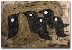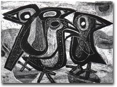 Rabenvögel, 1950, Schabtechnik, 38 x 50 cm, Museum Baden, Solingen - vergrößern
